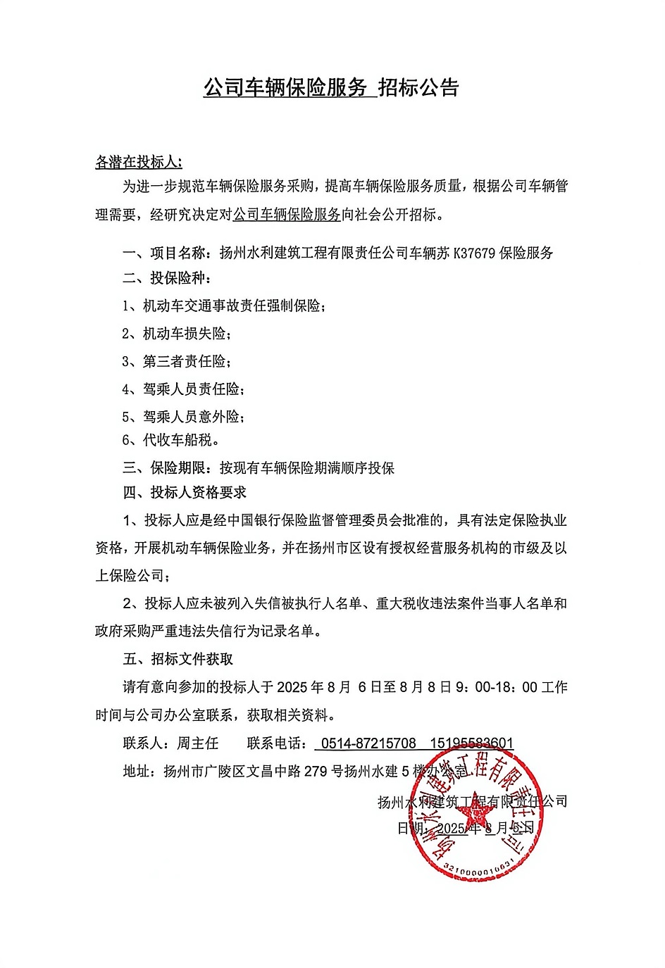 公司車(chē)輛保險(xiǎn)服務(wù)招標(biāo)公告