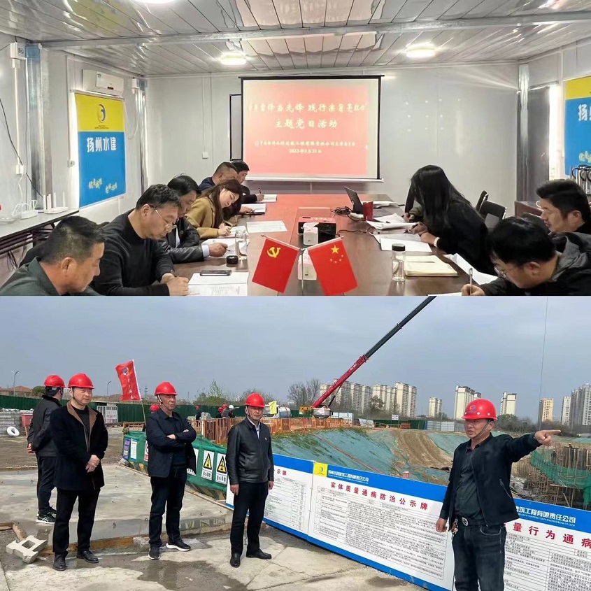 【概要描述】為認真貫徹落實習(xí)近平新時代中國特色社會主義思想和黨的二十大精神,結(jié)合擦亮“紅心”黨建品牌及弘揚雷鋒精神,3月31日,揚州水利建筑工程有限責(zé)任公司黨支部組織開展“學(xué)習(xí)雷鋒當(dāng)先鋒踐行宗旨亮紅心”主題黨日活動,支部全體黨員、入黨積極分子和江都區(qū)江橋片區(qū)項目部有關(guān)人員參加活動?! 』顒邮紫葏⒂^了江都區(qū)江橋片區(qū)項目部水系調(diào)整工程施工現(xiàn)場,項目部工作人員從建設(shè)進度、安全、質(zhì)量管理等方面進行了講解。隨后,全體人